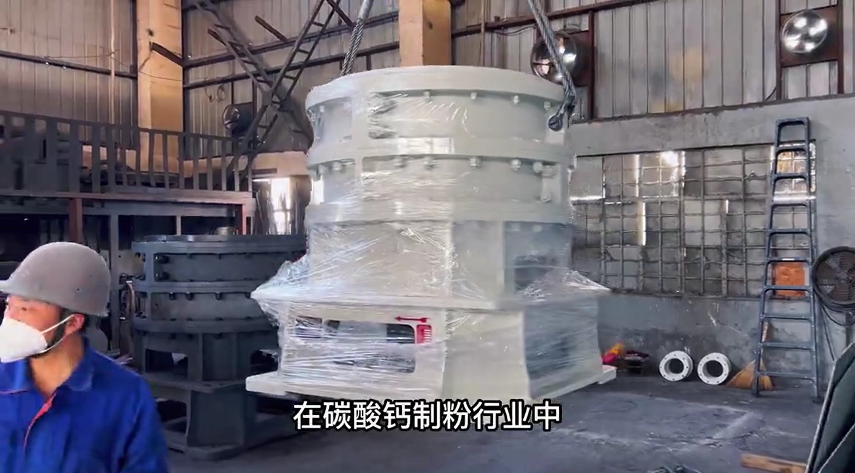 超細環(huán)輥磨粉機HGM100加工石灰石發(fā)往國外,超細磨粉機主要適用于對中、低硬度,莫氏硬度≤6級的非易燃易爆的脆...